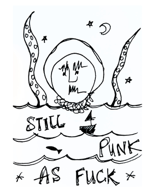 MINI ART Still Punk As Fuck (Ocean) 2.5" x 3.5" Pen & Ink Drawing