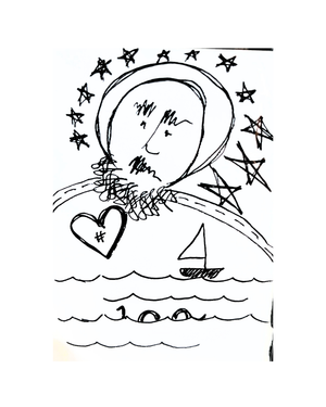MINI ART You and Me and The Sea 2.5" x 3.5" Pen & Ink Drawing
